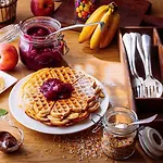 Morgenmaden var god et bredt udvalg af velsmagende mad. Meget ren funktionelt og moderne badeværelse.